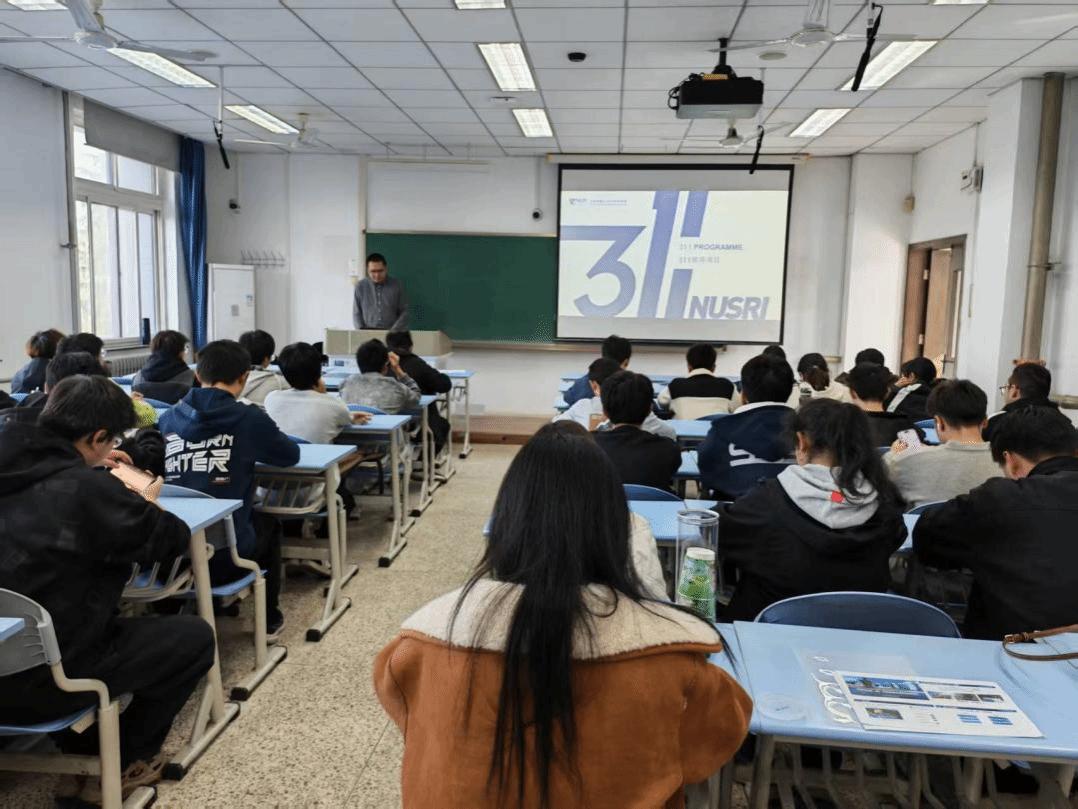 徐栋围绕项目架构、核心专业、申报要求与培养优势展开系统介绍。他指出,该项目以“学术深造+实践赋能”为导向,依托新加坡国立大学顶尖的科研资源与国际化教学体系,着力提升学生的科研创新能力、学术英语应用能力与跨学科协作素养。现场还播放了项目学生的纪实视频,生动展现学子在学术探索、文化交流与校园生活中的成长历程。最后,徐栋鼓励同学们把握机遇,积极申报,主动拓展国际化发展路径。
